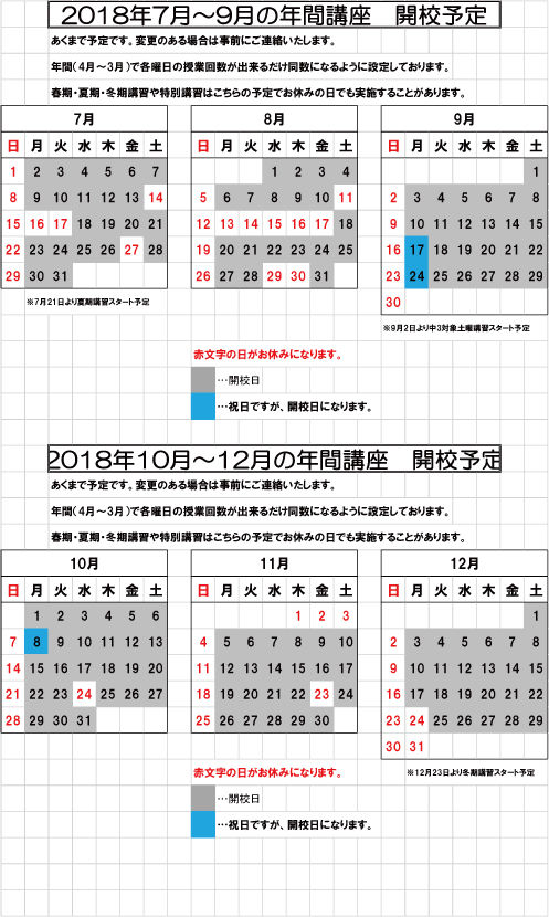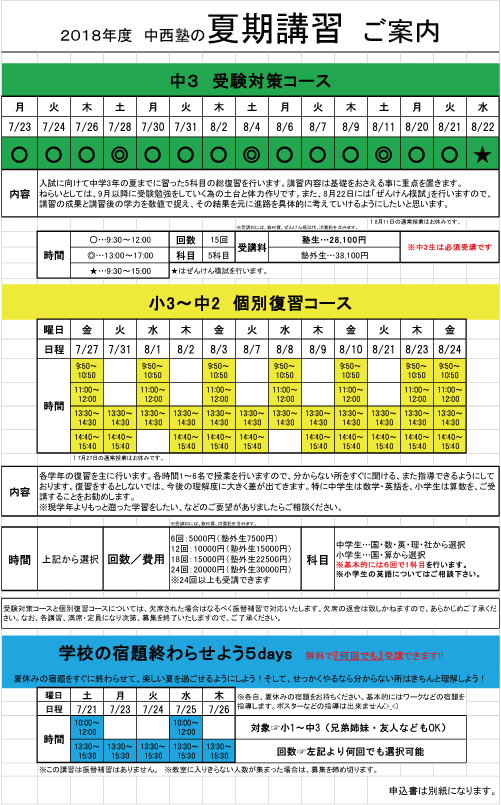 2018夏期講習案内