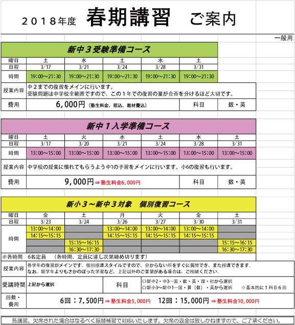 2018春期講習案内
