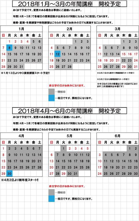 開校予定 2018 1月~6月
